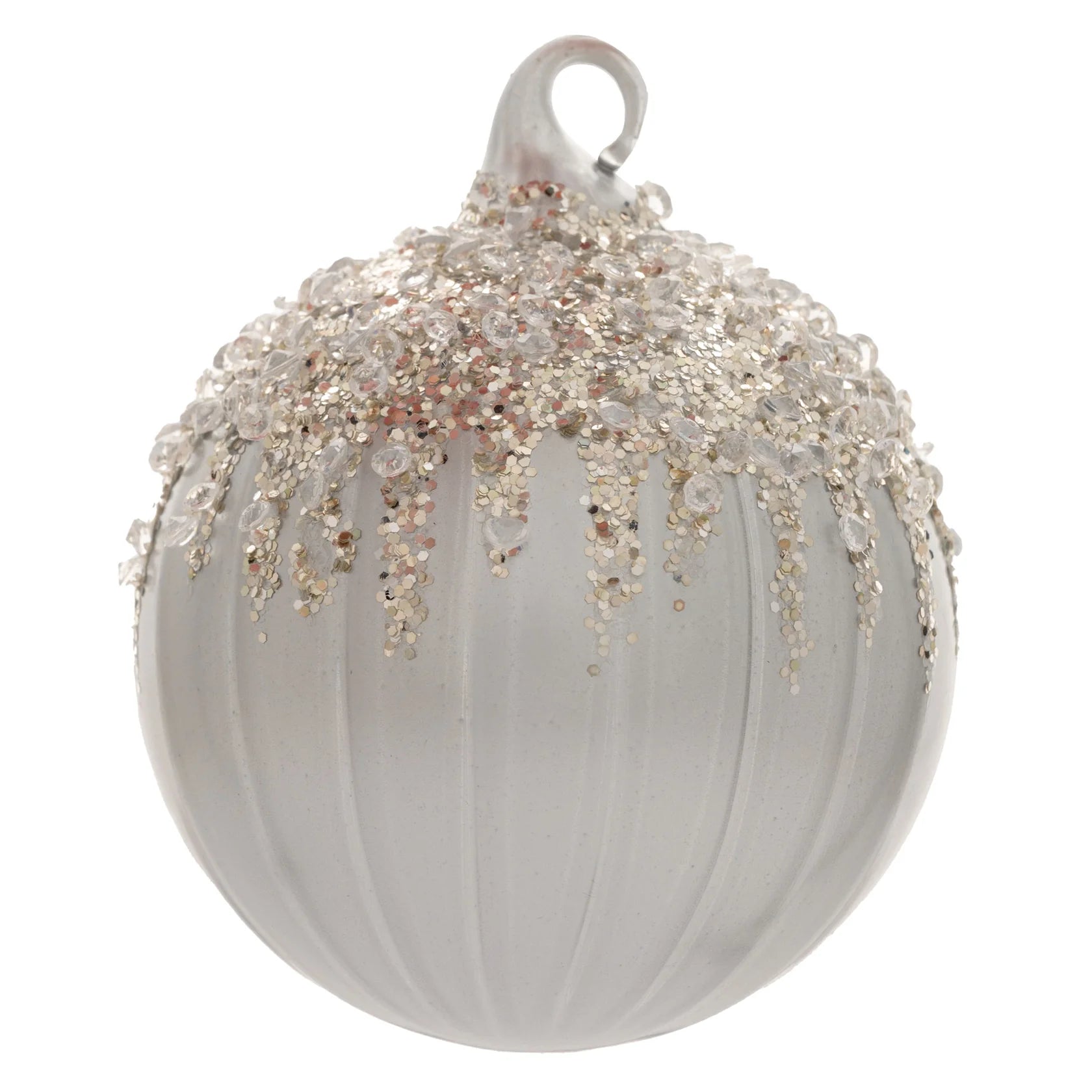 Add festive sparkle to your holiday display with the Ball Glitter Drip Glass Ornament. Its radiant glass surface and glittering drip design catch the light beautifully, creating a warm, cheerful glow on your Christmas tree. A classic ornament with just the right touch of shine for the season.