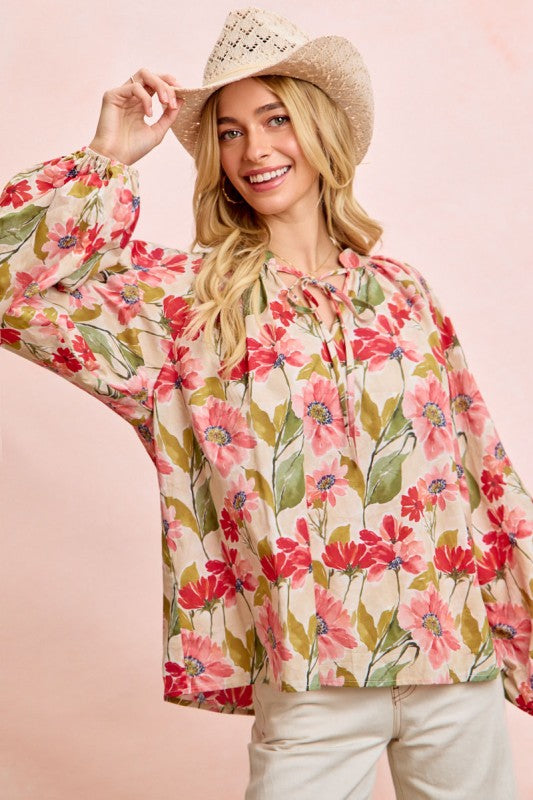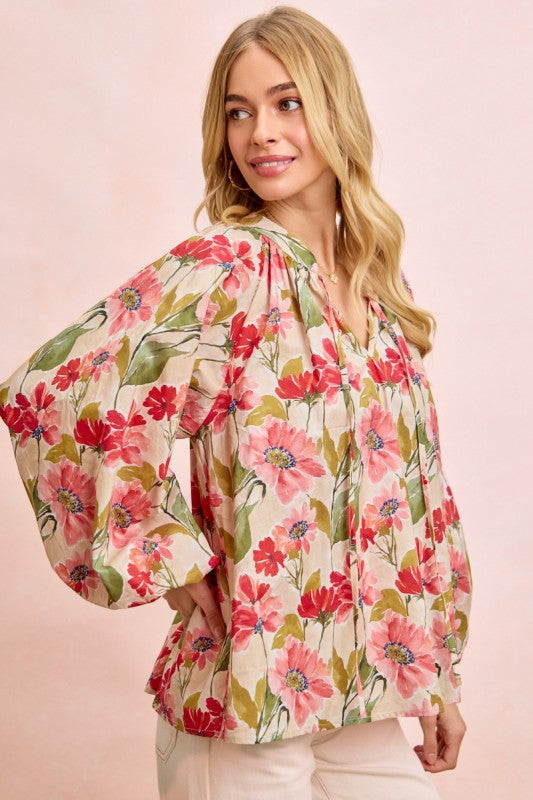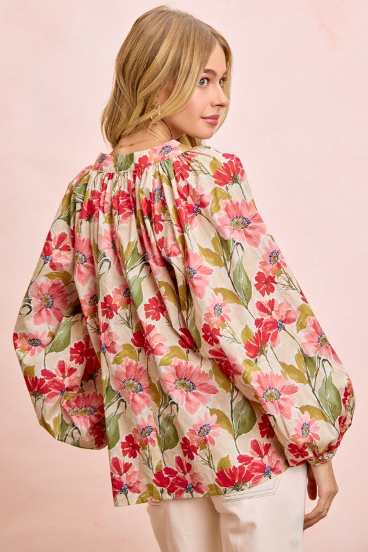 FLORAL PRINT EXAGGERATED BALLOON SLEEVES TOP