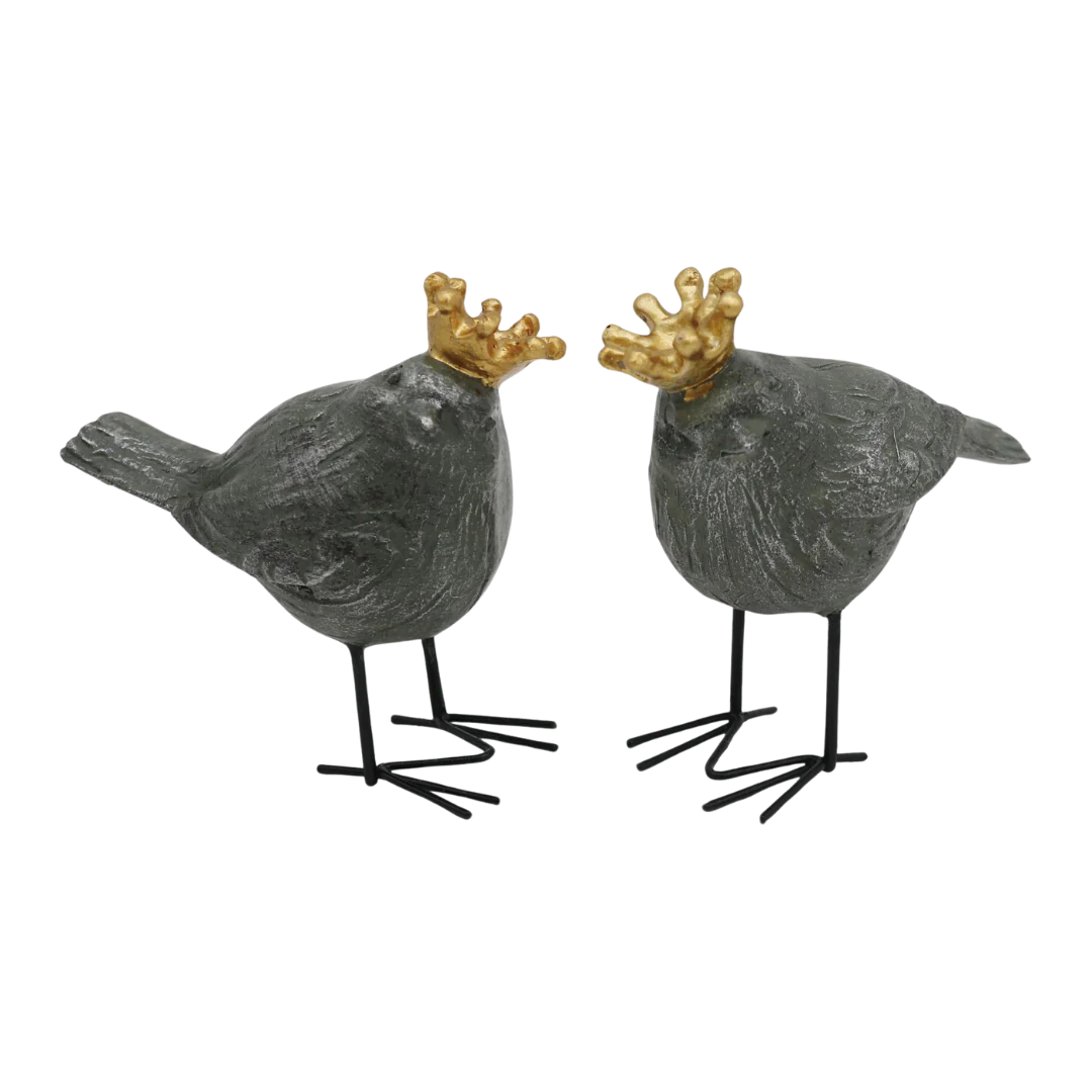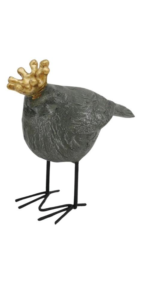This adorable bird is the queen of the pack.  Her golden crown gives her a fun twist.  It will look great mixed in with other home decor. She comes in two styles.