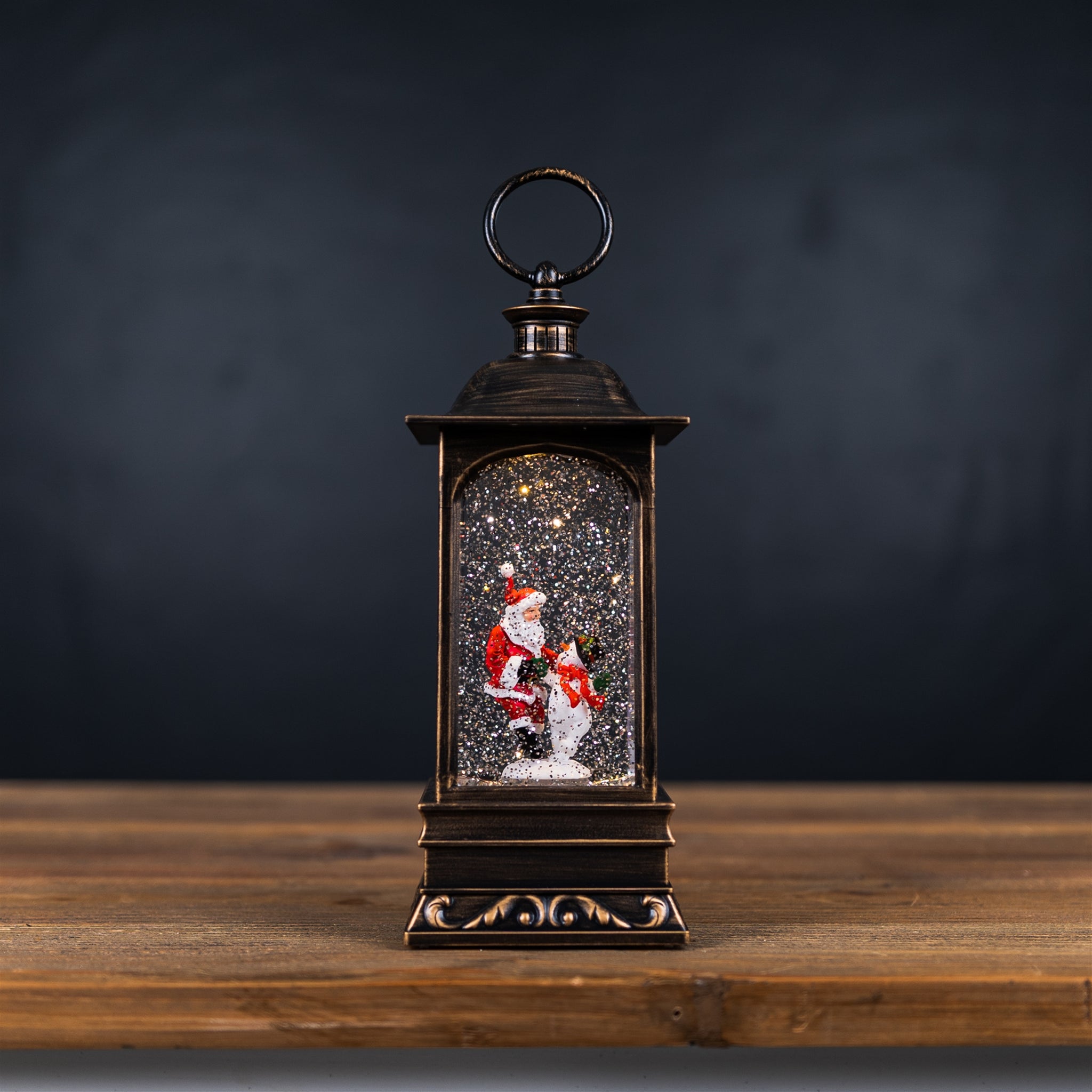 Santa is taking a break from all the toy making to visit his long time friend.  This beautiful snow globe runs on a USB cord or batteries.  It will light up your home this year for Santa to find his way.
