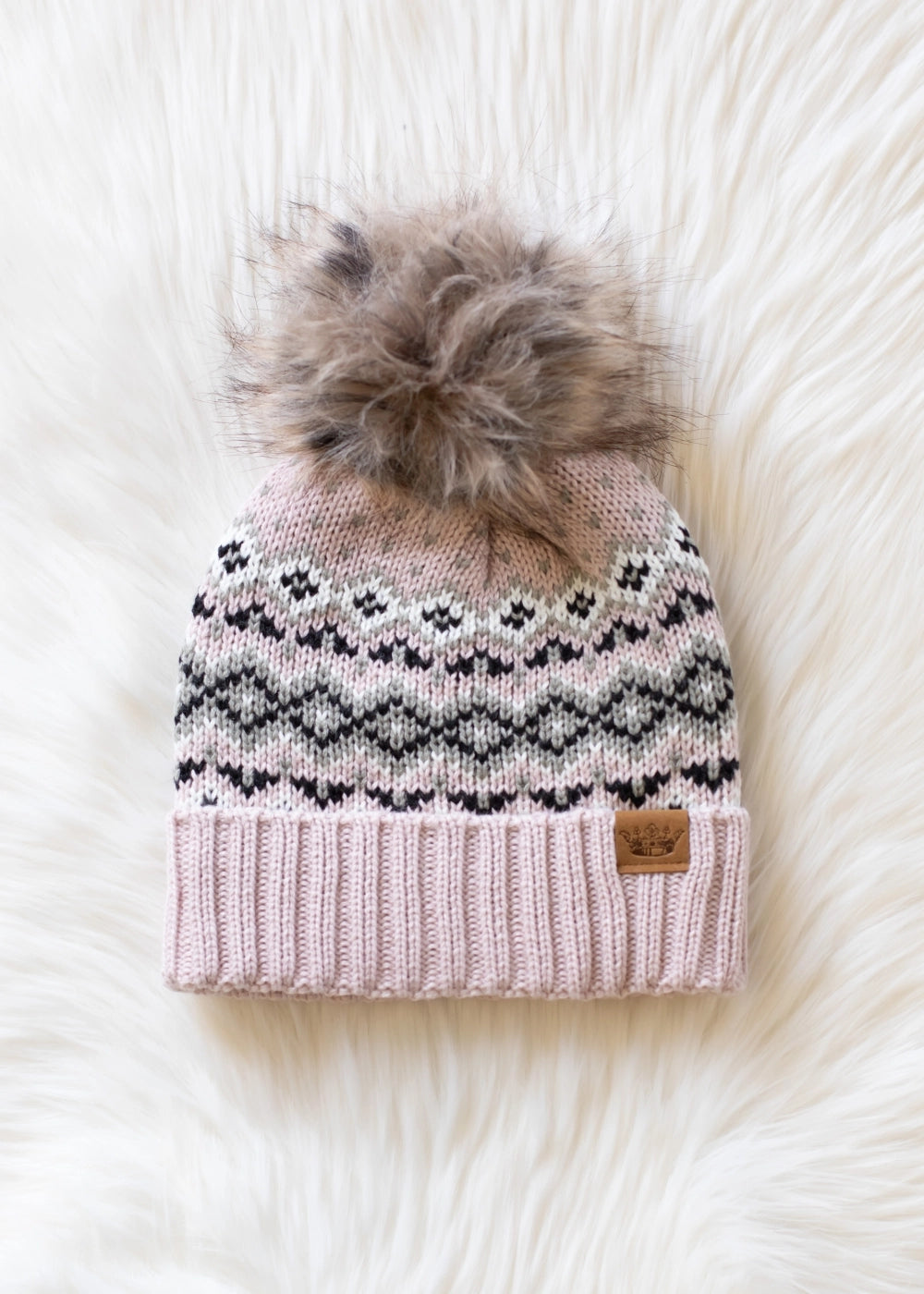 • Load image into Gallery viewer, Blush Sage Patterned Pom Hat