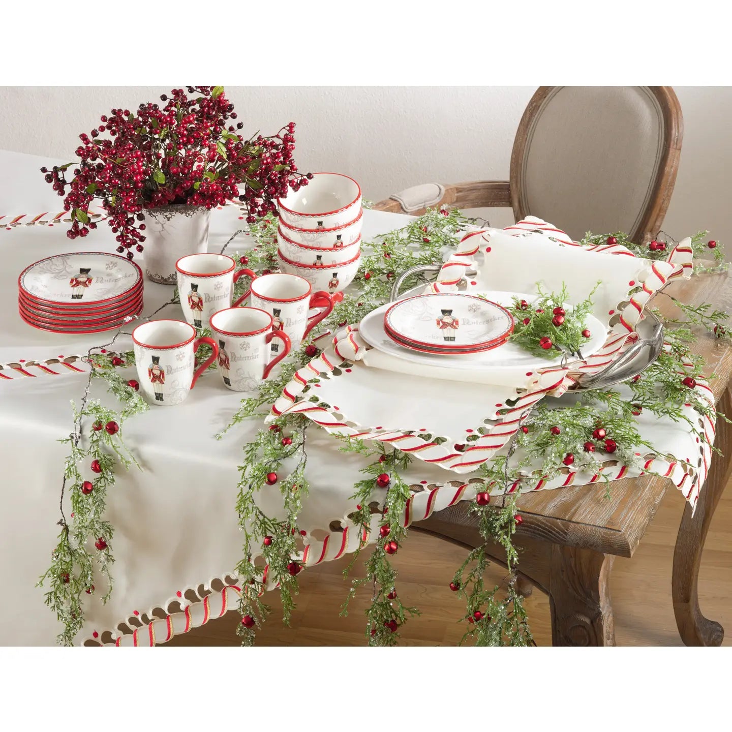 The spirit of Christmas will instantly set on your table with this cheerful and adorable Candy Cane Table Runner. Featuring a whimsical design detailed with a colorful candy cane-styled border, this runner is the perfect foundation for your holiday decor. Pair with Christmas-inspired dinnerware or coordinate solid colors for a cohesive table and help make memorable moments for your guests. Season: Holiday.
