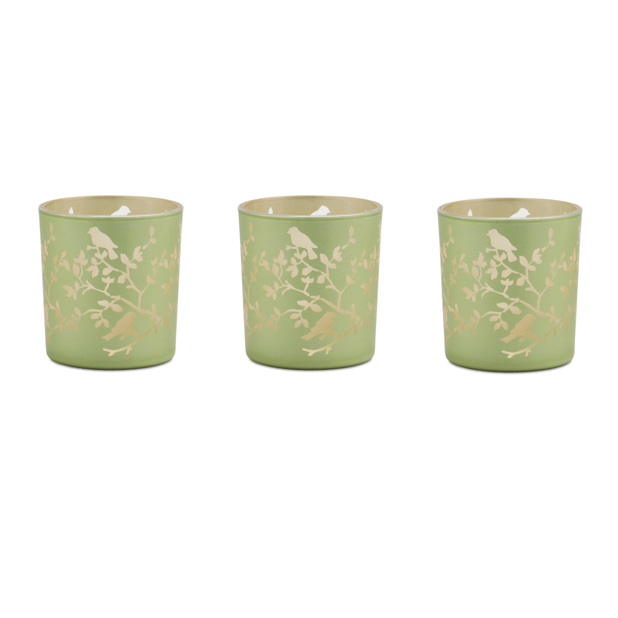 These votives are stunning. The soft green hues glistens with a lit candle. It will look great in a bookcase with an artificial candle or on a sideboard. Mix it in with other home decor to complete the look.