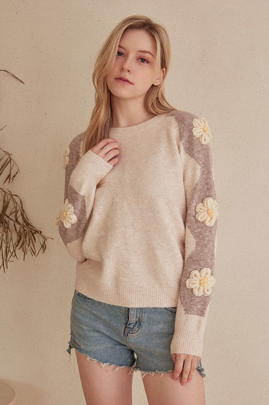This is a must have sweater for this season. Check out the details on the sleeve. It gives this classic sweater an updated twist. Floral Fuzzy Texture Long Sleeves Sweater.