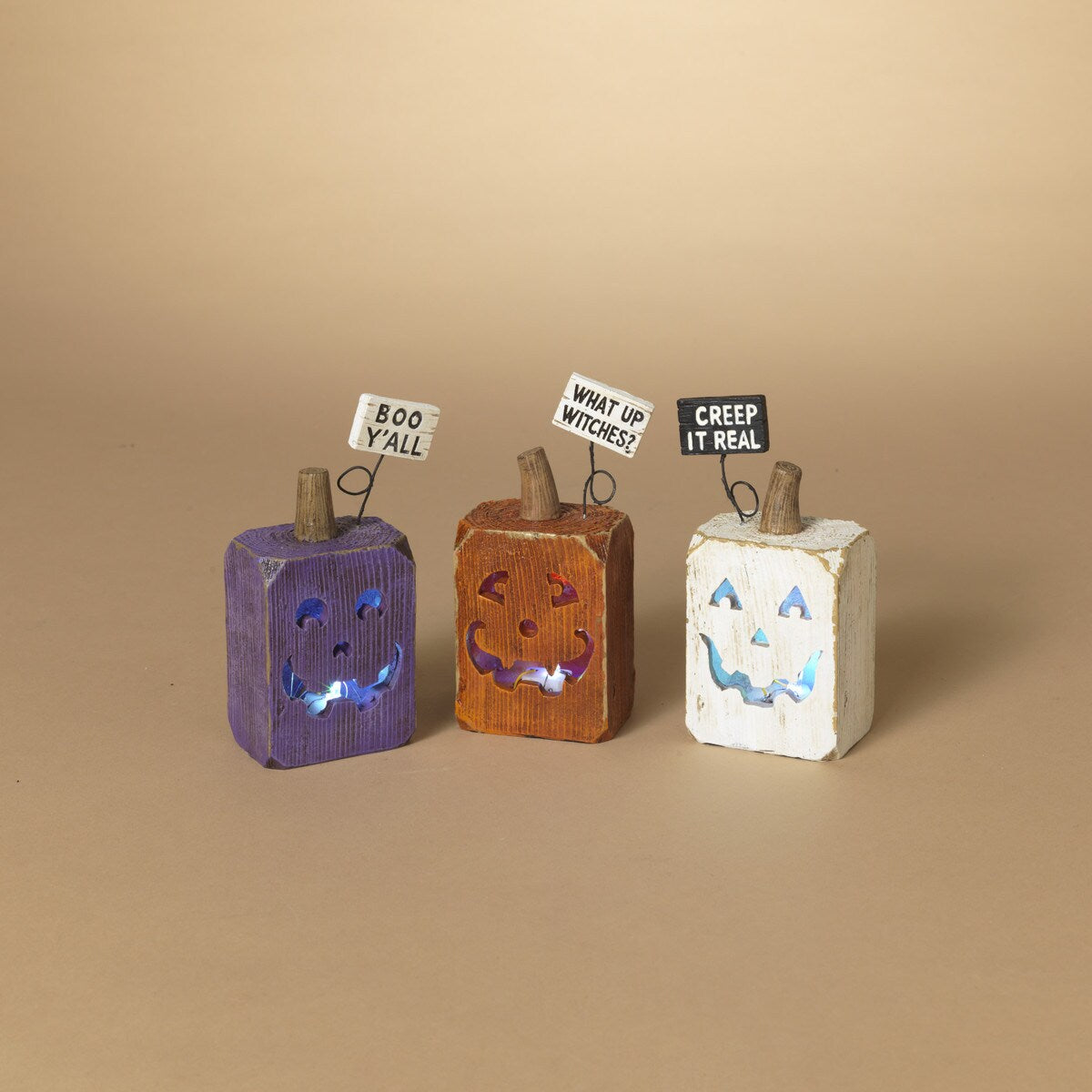These pumpkins are a perfect addition to any Halloween decor.  It comes in three styles.  Pick one or pick all three.